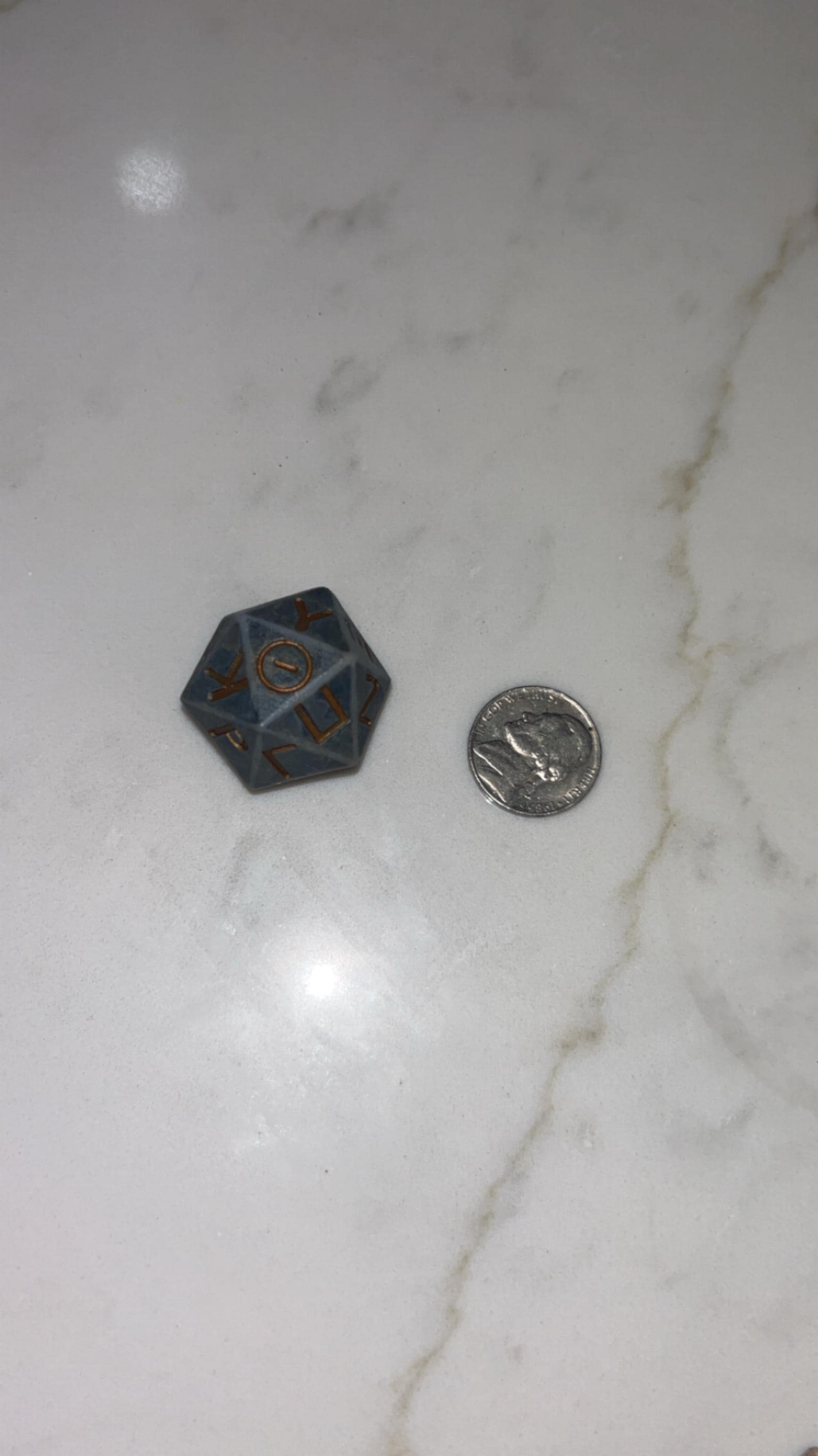 I 3D resin printed and hand painted these 20 sided dice to look like the ancient Greek lettered die that is sitting in the Metropolitan Museum. Thought to of been made around the 2nd or 3rd century A.D.