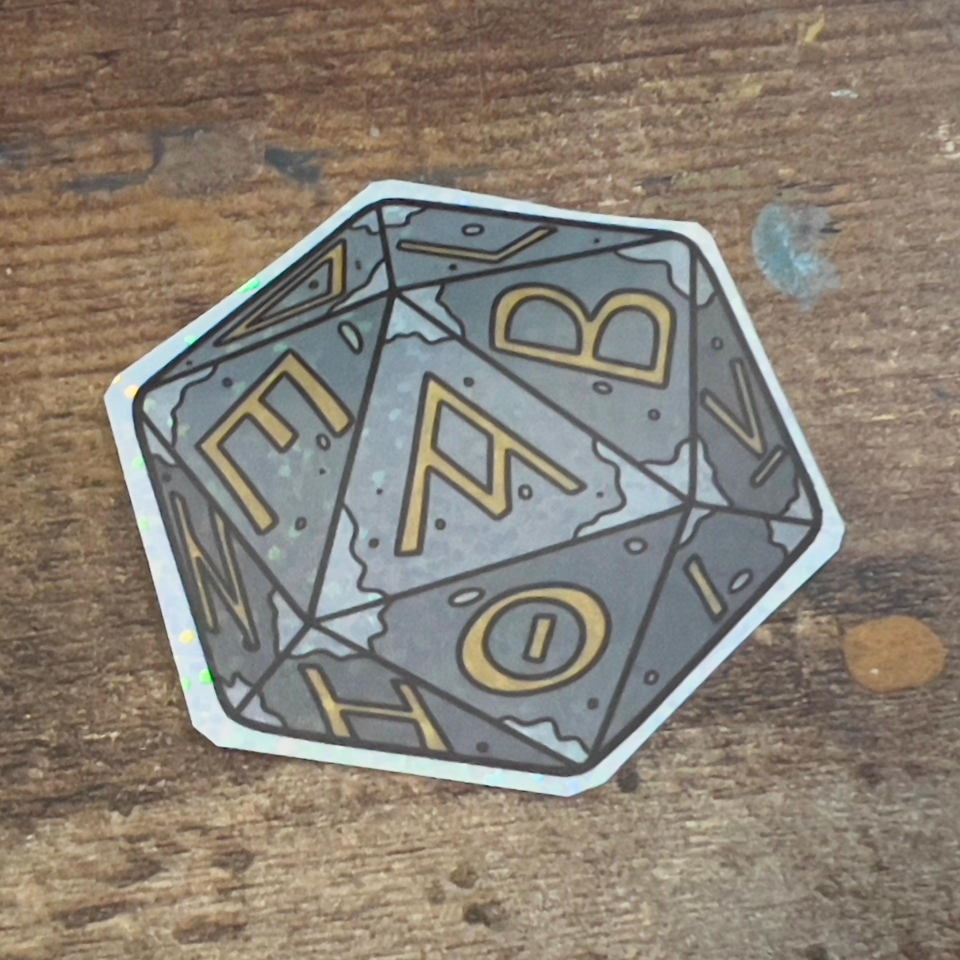 Ancient D20 Glitter Sticker2.5inx2.5in
